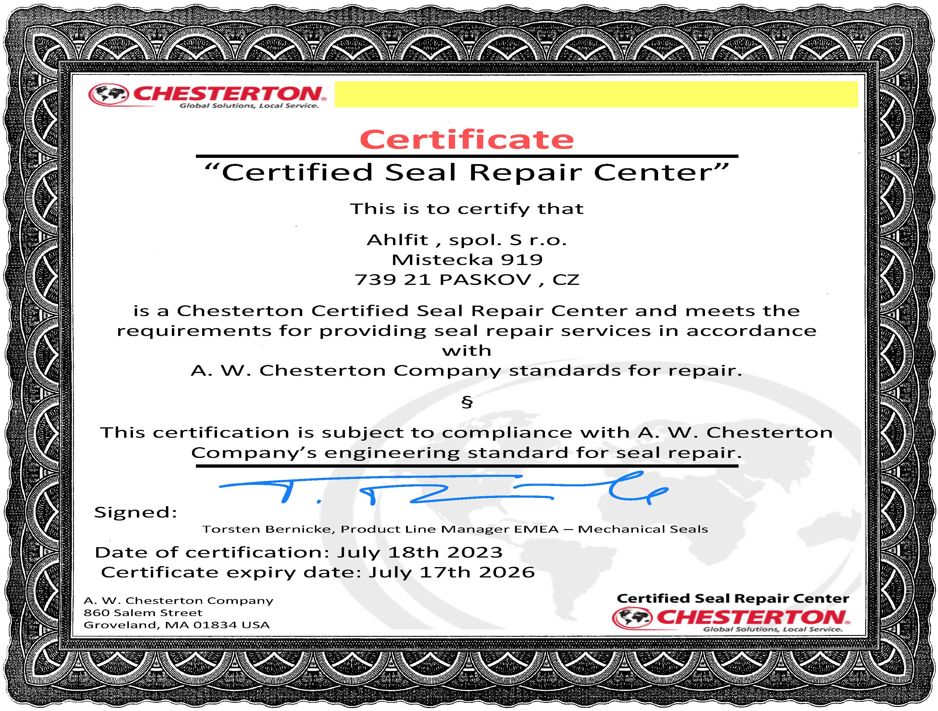 AHLFIT = Sulzer Pumps contract for Agency + service on CZ/SK area Contract – authorisation with SULZER Austria….renewed in 2014